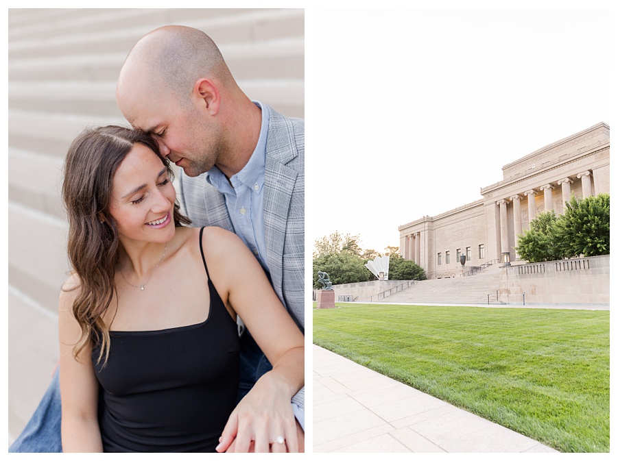 Morgan and Blake’s Loose Park engagement session in Kansas City, Missouri was the perfect blend of natural beauty and timeless romance. With blooming gardens, tree-lined pathways, and open green spaces, Loose Park offers a soft, elegant setting for engagement photos that feel relaxed and genuine. Their engagement session captured effortless connection and joyful moments, while also incorporating a brief stop at the iconic Nelson-Atkins Museum of Art for a touch of classic architectural elegance.