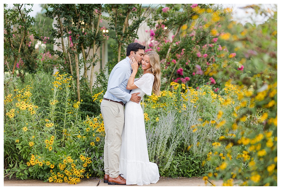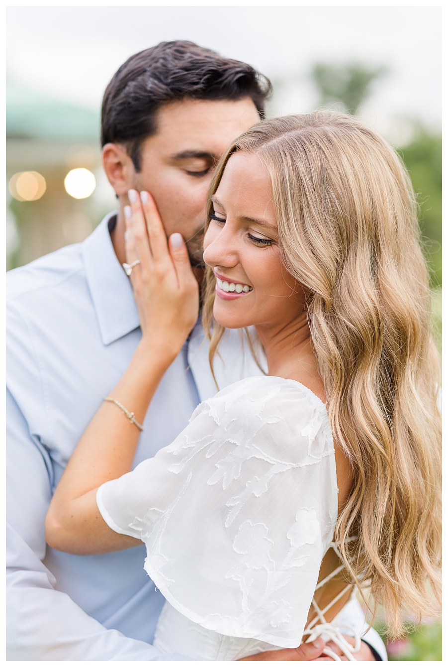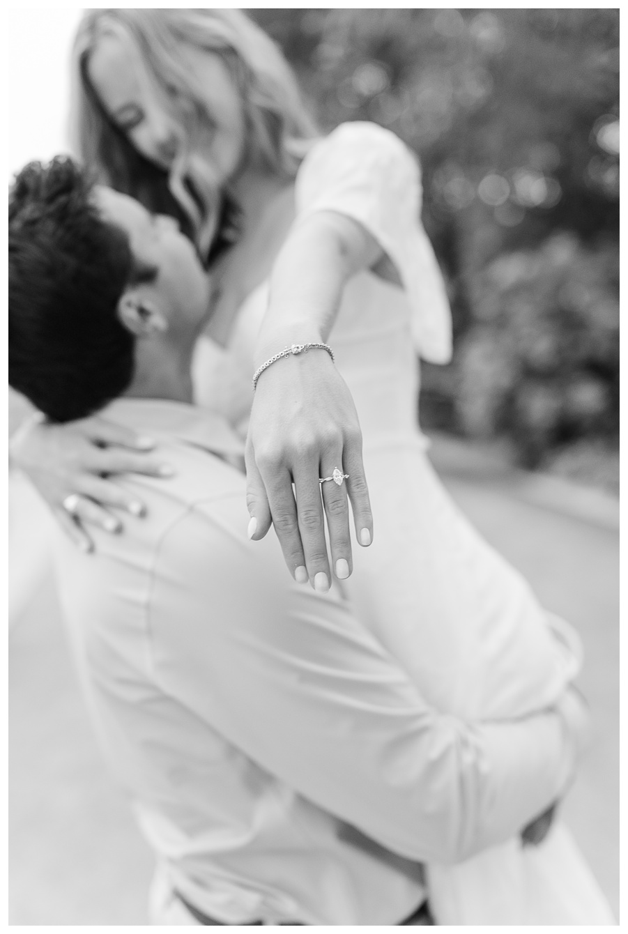 When Andrew picked her up and drove her to the Jewel Box, she remained completely unaware of what was actually about to happen. Once inside the greenhouse, Sarah began to panic, confused by the lack of party decorations and worried they were in the wrong place. She tried multiple times to leave, afraid they would miss the surprise altogether. Andrew eventually took her by the hand and gently led her deeper into the space. Even as he began sharing heartfelt words about how much he loved her, Sarah was still trying to exit — until Andrew finally looked at her and said, “Sarah, I am proposing to you.”